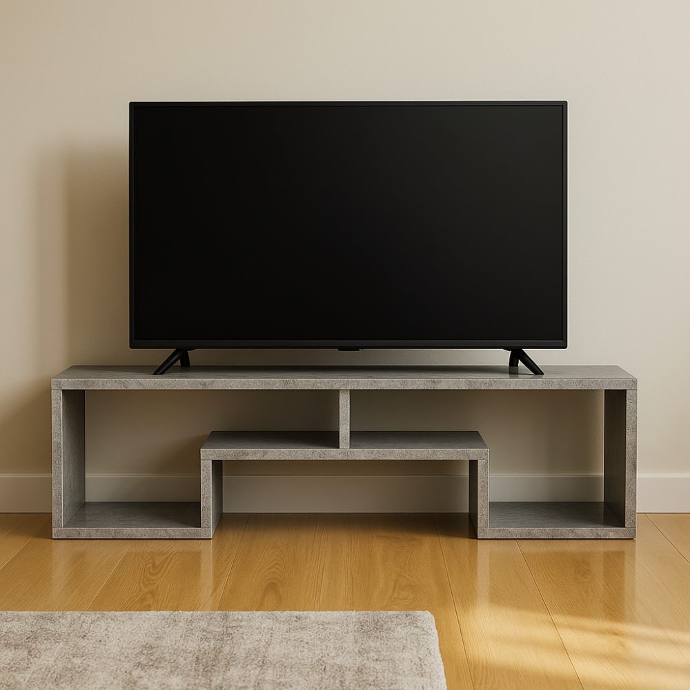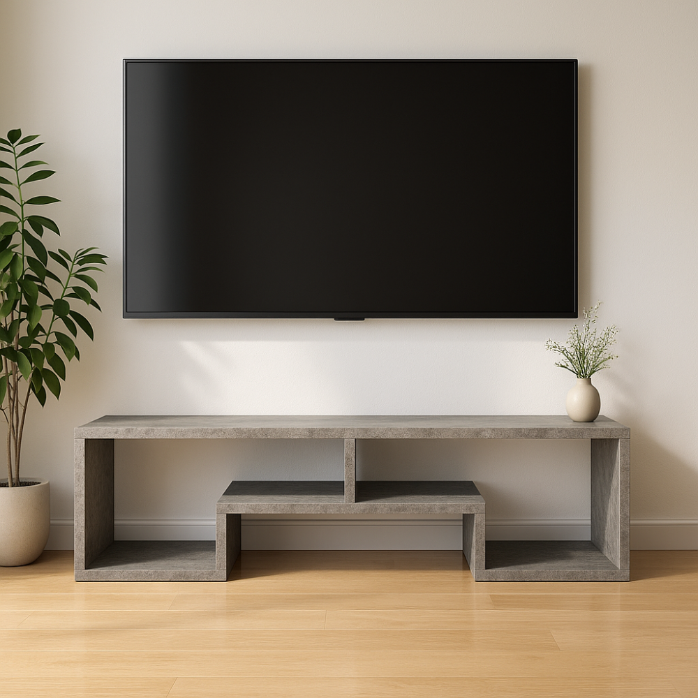 طاولة تلفاز متدرّجة — 160 × 30 × 50 سم، بني / رمادي