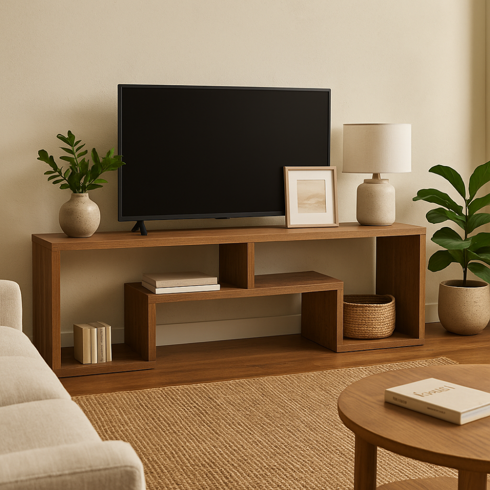 تبدو غرفة المعيشة أهدأ عندما يجد كل شيء مكانه. تمنحك هذه الطاولة بطول 160 سم منصة أنيقة للشاشة، بينما ترتّب البقية بهدوء: أجهزة الألعاب على الرفوف المتدرّجة في الوسط، والسلال أو الديكورات في الجانبين، والأسلاك تمرّ بسلاسة عبر الظهر المفتوح لتختفي الفوضى من المشهد. يقلّل الارتفاع المنخفض والملامح الانسيابية من ازدحام الرؤية ويجعل ليالي الأفلام أكثر راحة. اختر اللون البنّي الدافئ لإحساس منزلي حميم أو الرمادي الحجري لإطلالة عصرية. تصميم عملي ينظّم الأجهزة ويخفِي الفوضى البصرية وينسجم مع الديكورات الكلاسيكية والحديثة.