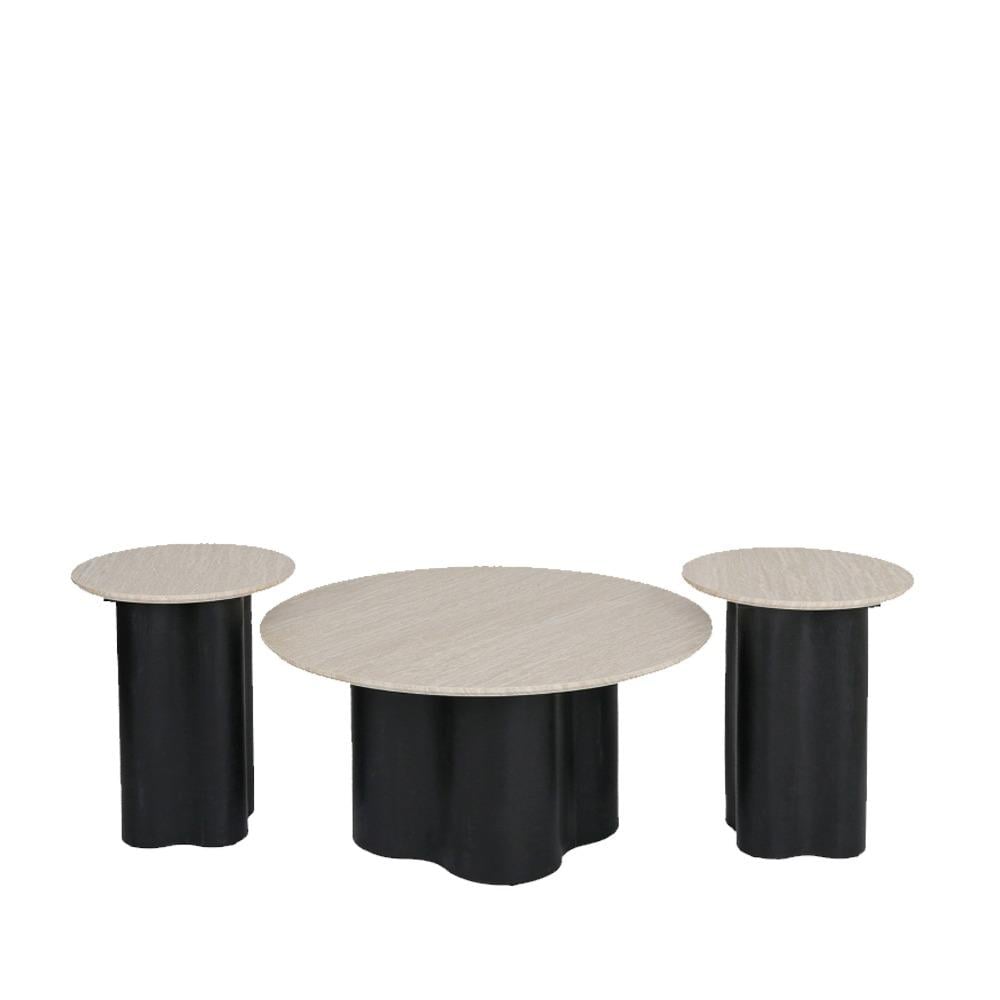 - المحتويات: 1 طاولة وسط + 2 طاولات جانبية