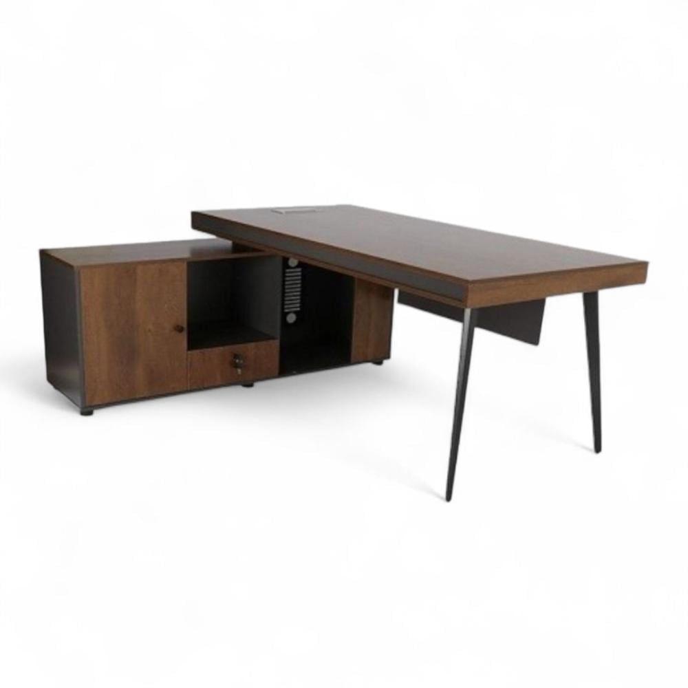 مكتب إداري بشكل حرف L مع وحدة تخزين جانبية — خشبي غامق / أسود