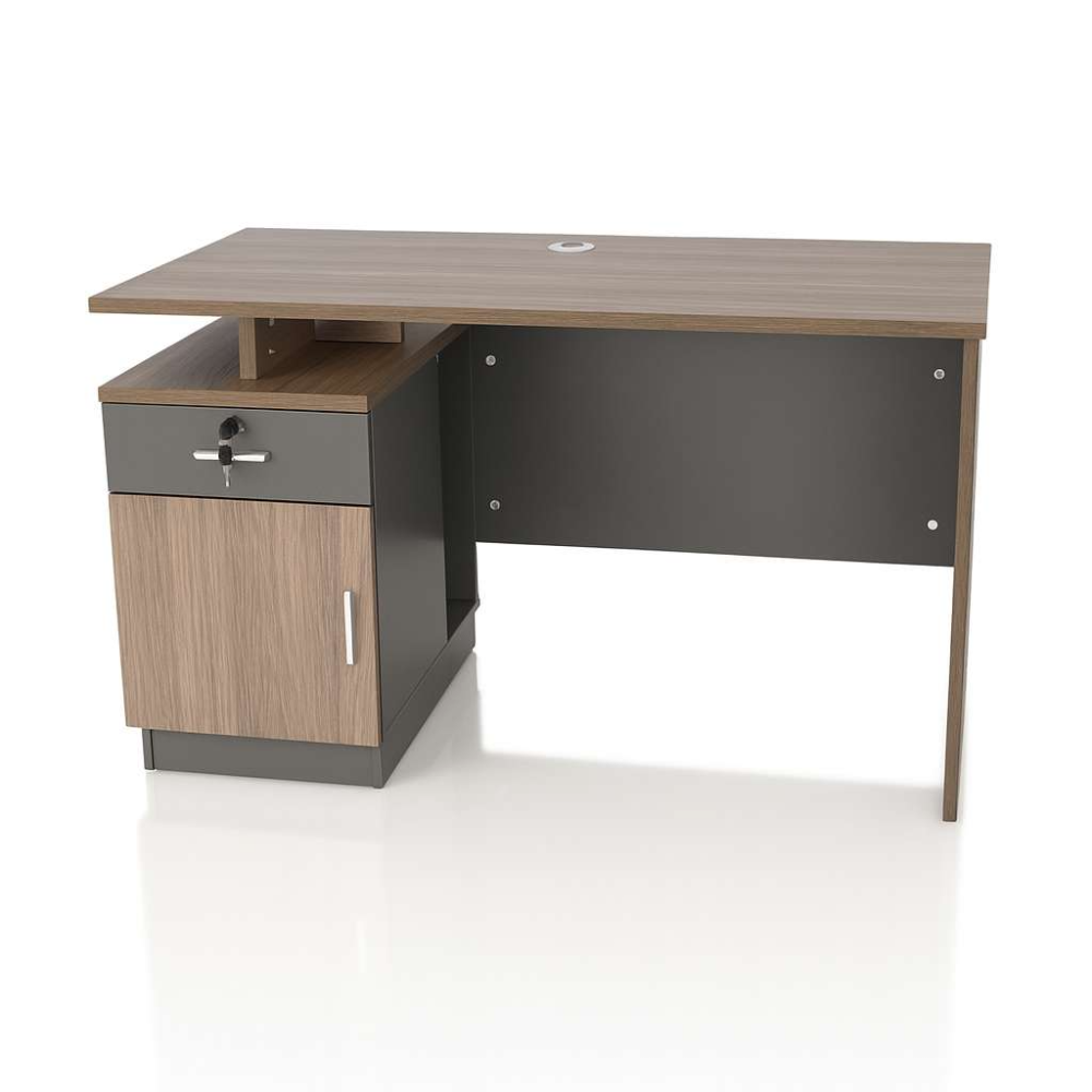 مكتب التخزين الجانبي — 120 سم، خشب غامق / رمادي + بني خشبي