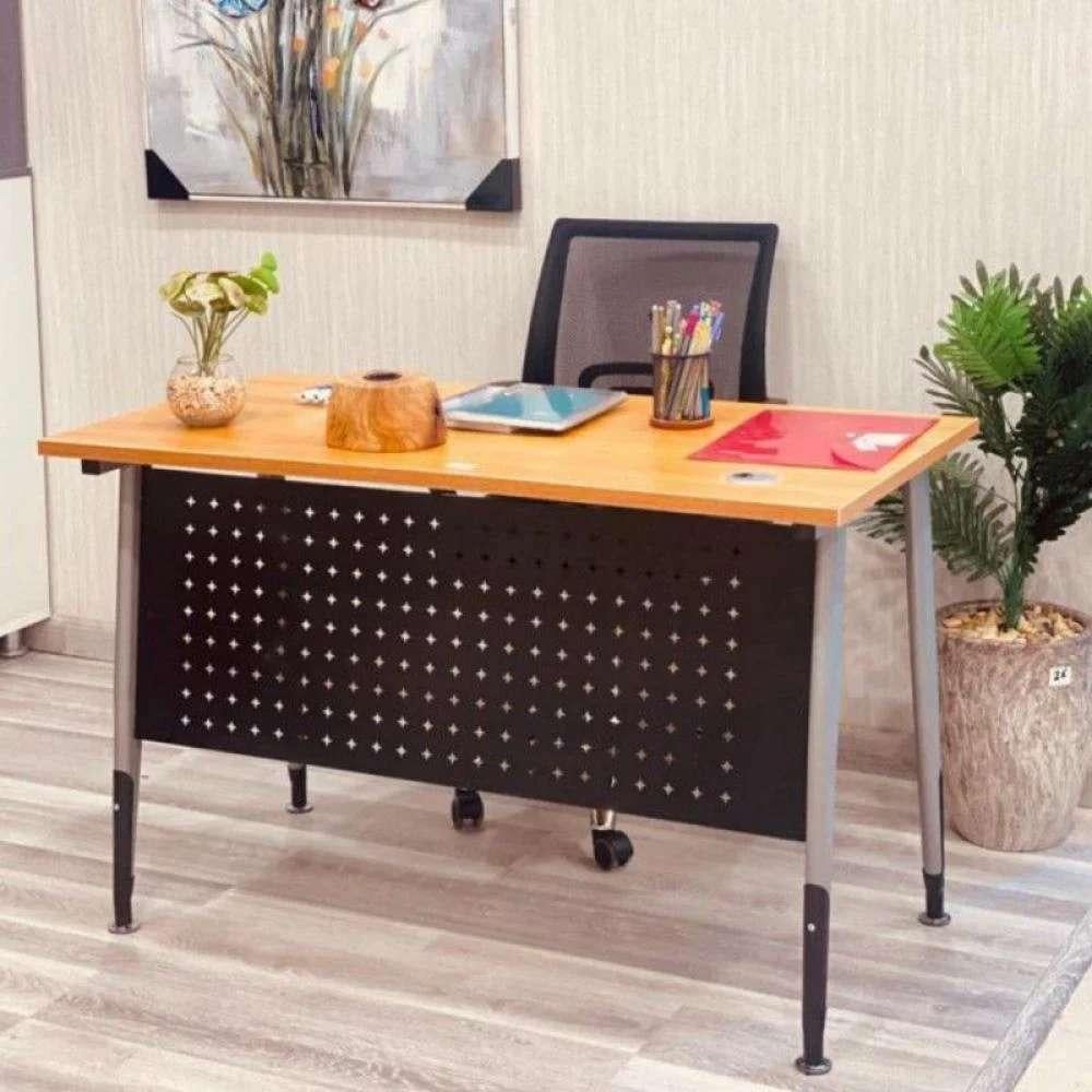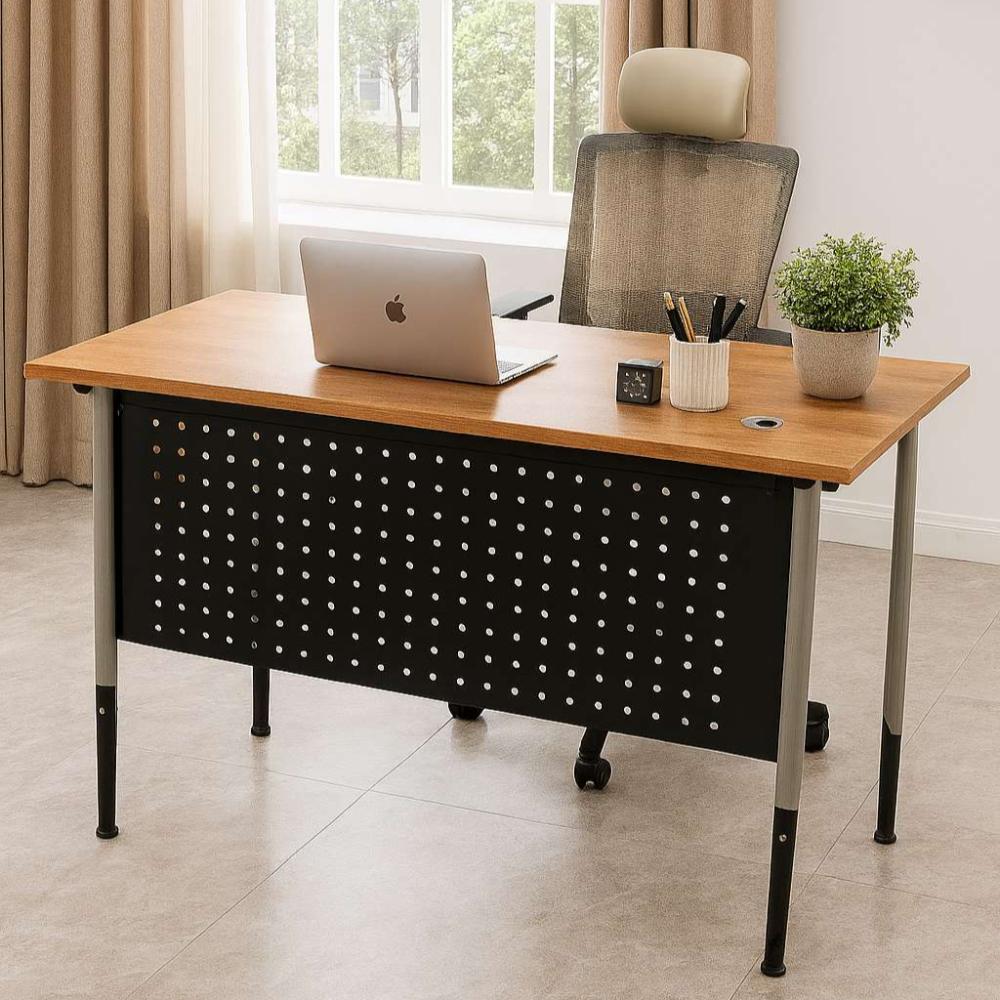 Saver Desk is your no-frills solution for focused work at home or in the office. With a spacious 120 cm surface, you’ll have plenty of room for your laptop, notebooks, and daily tasks. The scratch- and stain-resistant top is easy to clean, and the sturdy iron legs keep everything steady. A sleek black iron panel adds privacy and a clean finish to the desk’s look. If you’re after function, speed, and affordability — this desk delivers.