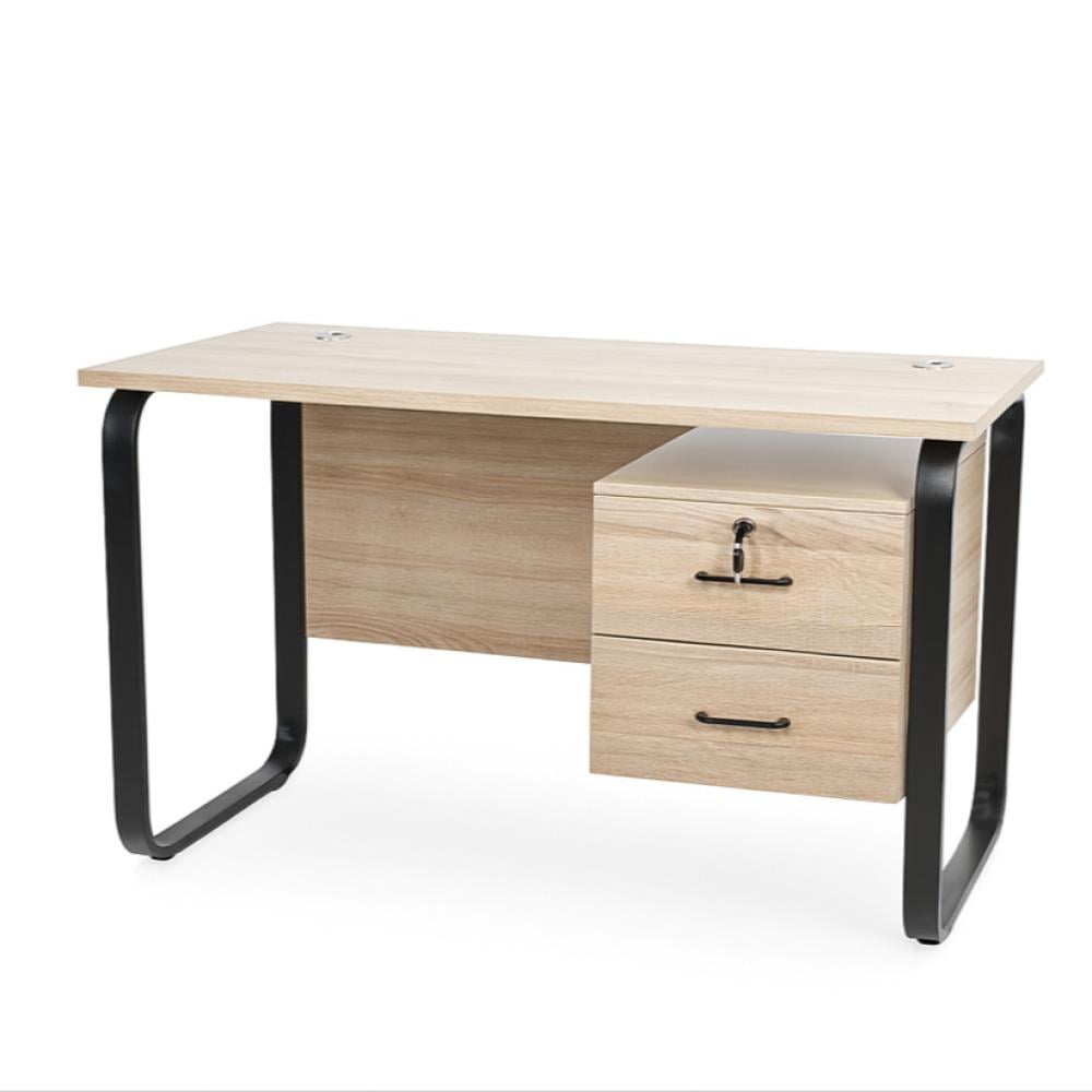 Designed for everyday productivity, the Modern Office Desk gives you a roomy work surface with built-in organization. The right-side drawer stack keeps essentials close (with a lock on the top drawer), while the cable grommet routes chargers neatly to maintain a clean desktop. The curved metal legs add stability and a modern profile that blends easily into home offices, study rooms, and small business spaces.