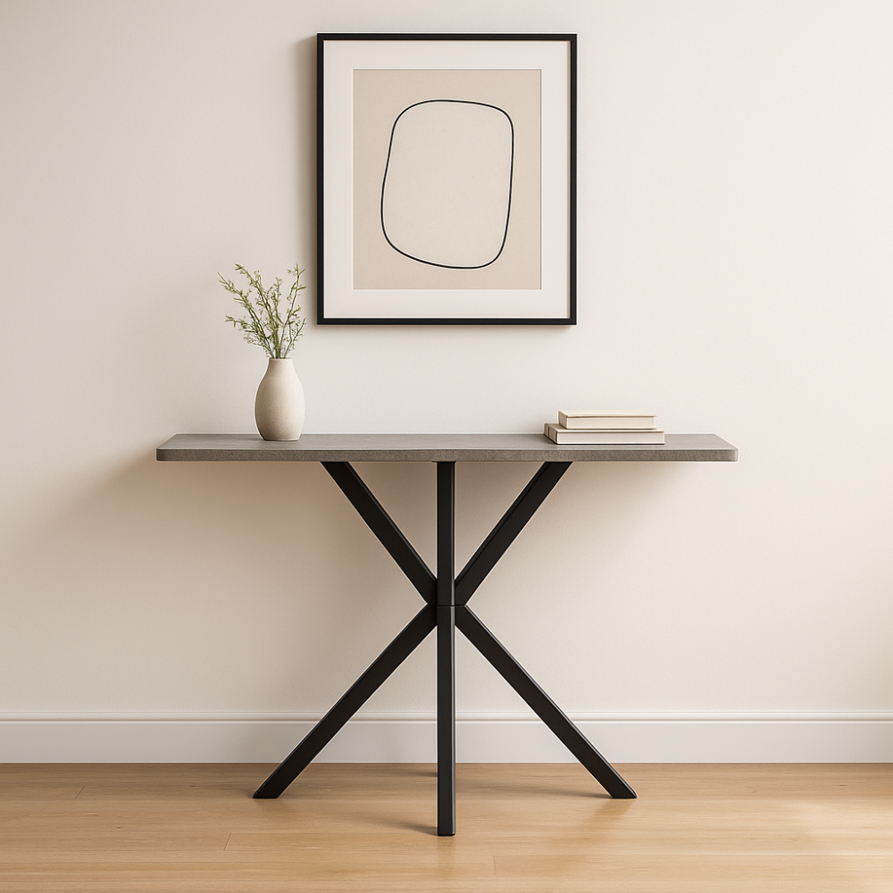 Modern Console Table — Metal Base, Brown/Gray, 120×40×77 cm