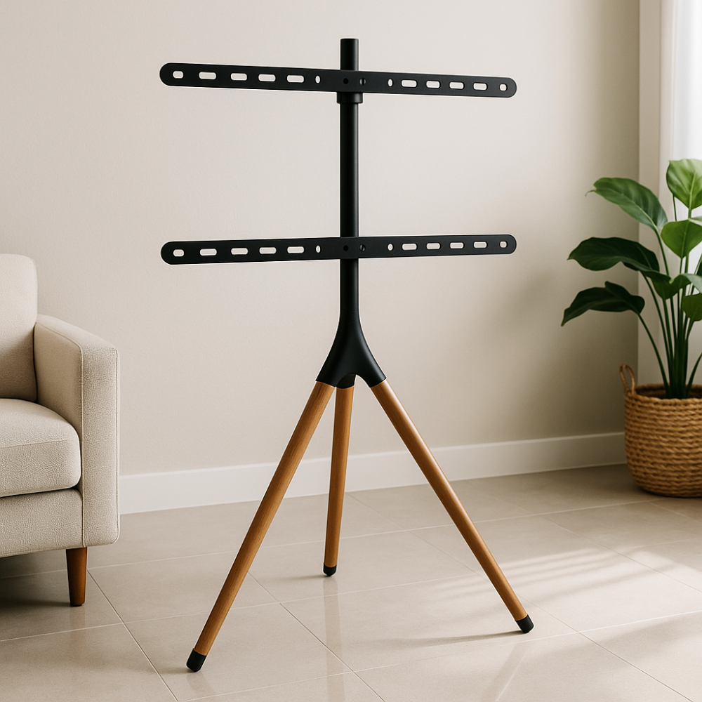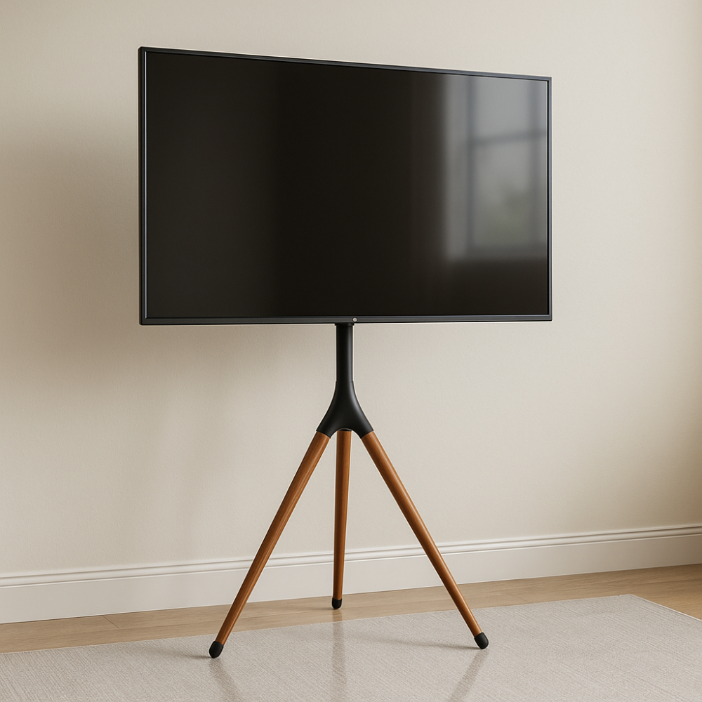 Built for everyday family use, this freestanding easel stand moves easily between rooms and keeps cables out of sight, so movie nights, gaming sessions, and video calls feel neat and intentional. The warm beech legs blend with Scandinavian, contemporary, or classic décor, while the slim black column frames the screen like a gallery piece. Whether it’s the living room, a studio corner, or a pop-up presentation, you get stable support, flexible angles, and a premium look—without putting a single hole in the wall.